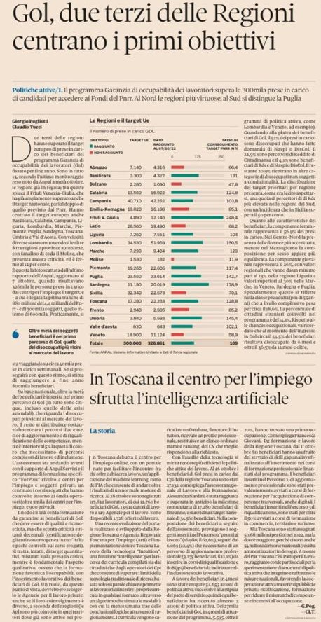 Sono quasi 327mila i beneficiari presi in carico sino ad ora dai Centri per l’impiego italiani nell’ambito del programma Garanzia Occupabilità dei Lavoratori (GOL). Il programma può contare su risorse pari a 4,4 miliardi di euro totali, per coinvolgere, entro il 2025, tre milioni di beneficiari, di cui 800 mila in attività formative, 300 mila delle quali relative alle competenze digitali. L’obiettivo da raggiungere entro il 2025 è ancora lontano, ma guardando al presente, i lavori procedono meglio del previsto: il target previsto per il 2022, ovvero il 20% (600mila beneficiari) dell’obiettivo fissato entro il 2025, è stato raggiunto con ben tre mesi di anticipo rispetto agli impegni assunti con la Commissione Europea.